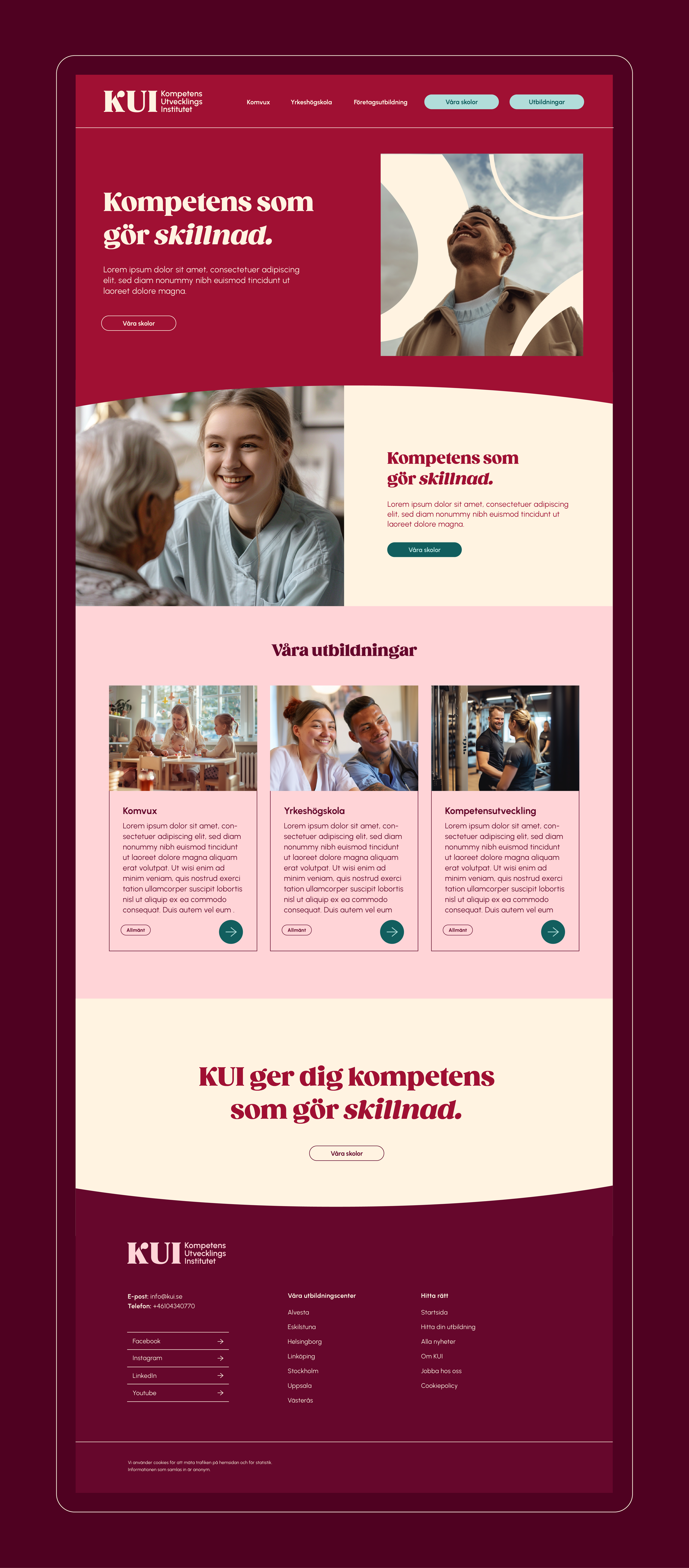 KUI is one of Sweden's leading adult education providers in healthcare, social care, preschool and school education, and leisure activities. KUI offers a wide range of programs and courses designed to meet the needs of today and tomorrow. By focusing on lifelong learning, KUI equips individuals with the knowledge, skills, and values needed for the future.
