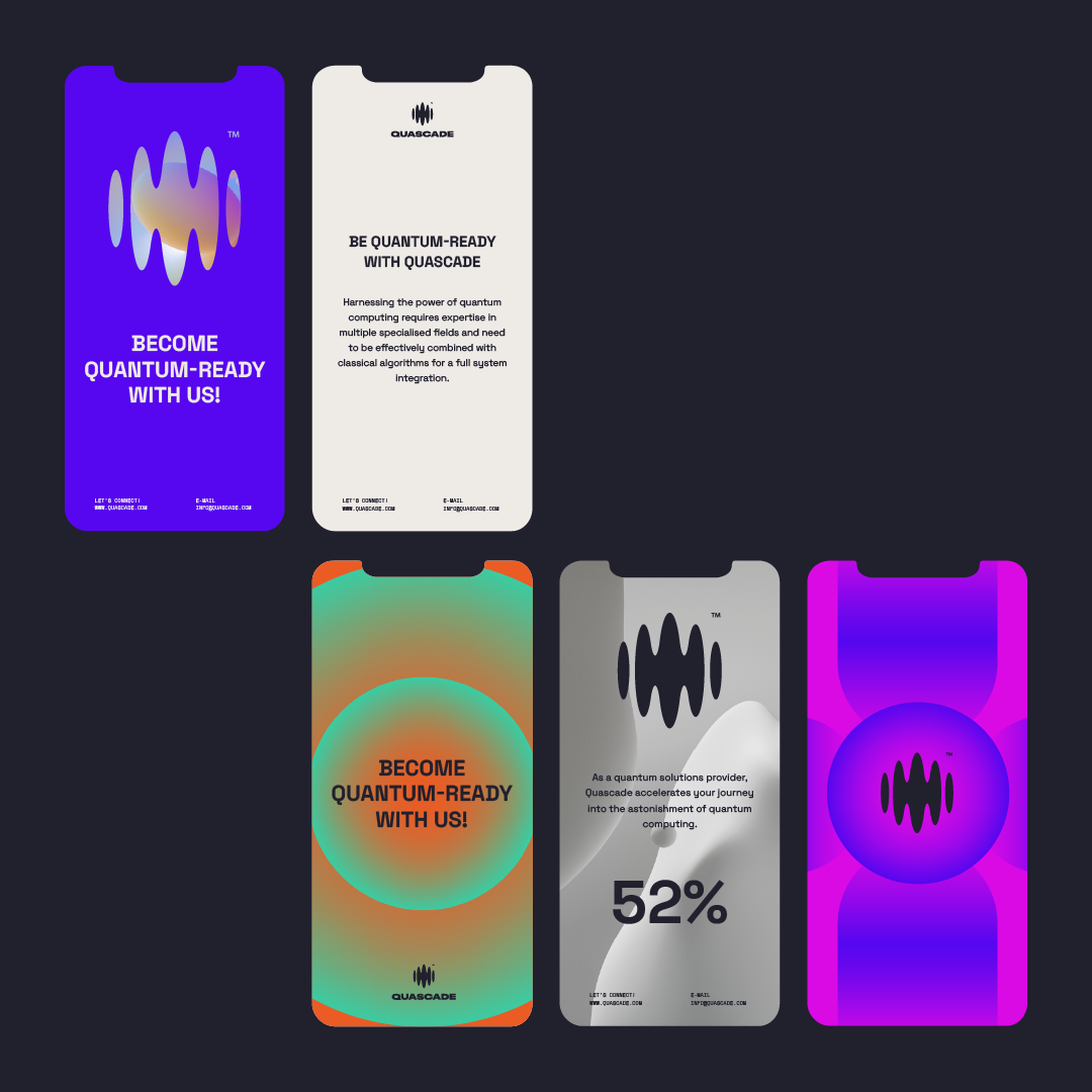 Quascade is a startup in the quantum computing industry, driven by young minds and a great mission — making quantum computing simple, accessible and affordable for everyone. Quascade’s visual identity is designed to represent technology and science with a young and fresh touch to it. Using Indigo and Off-white as the brand’s main colors, Quascade’s identity create a professional and timeless visual world while the colorful gradient illustrations give Quascade an innovative, modern, and fresh feel to the brand.