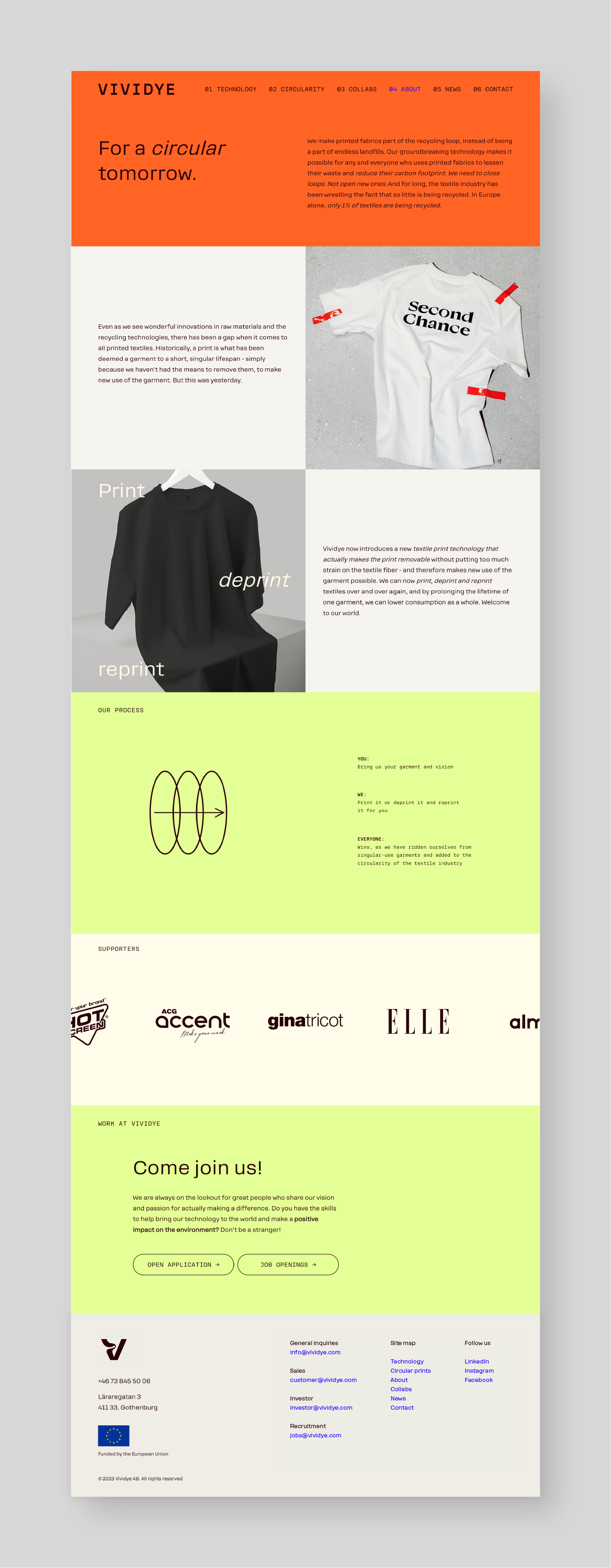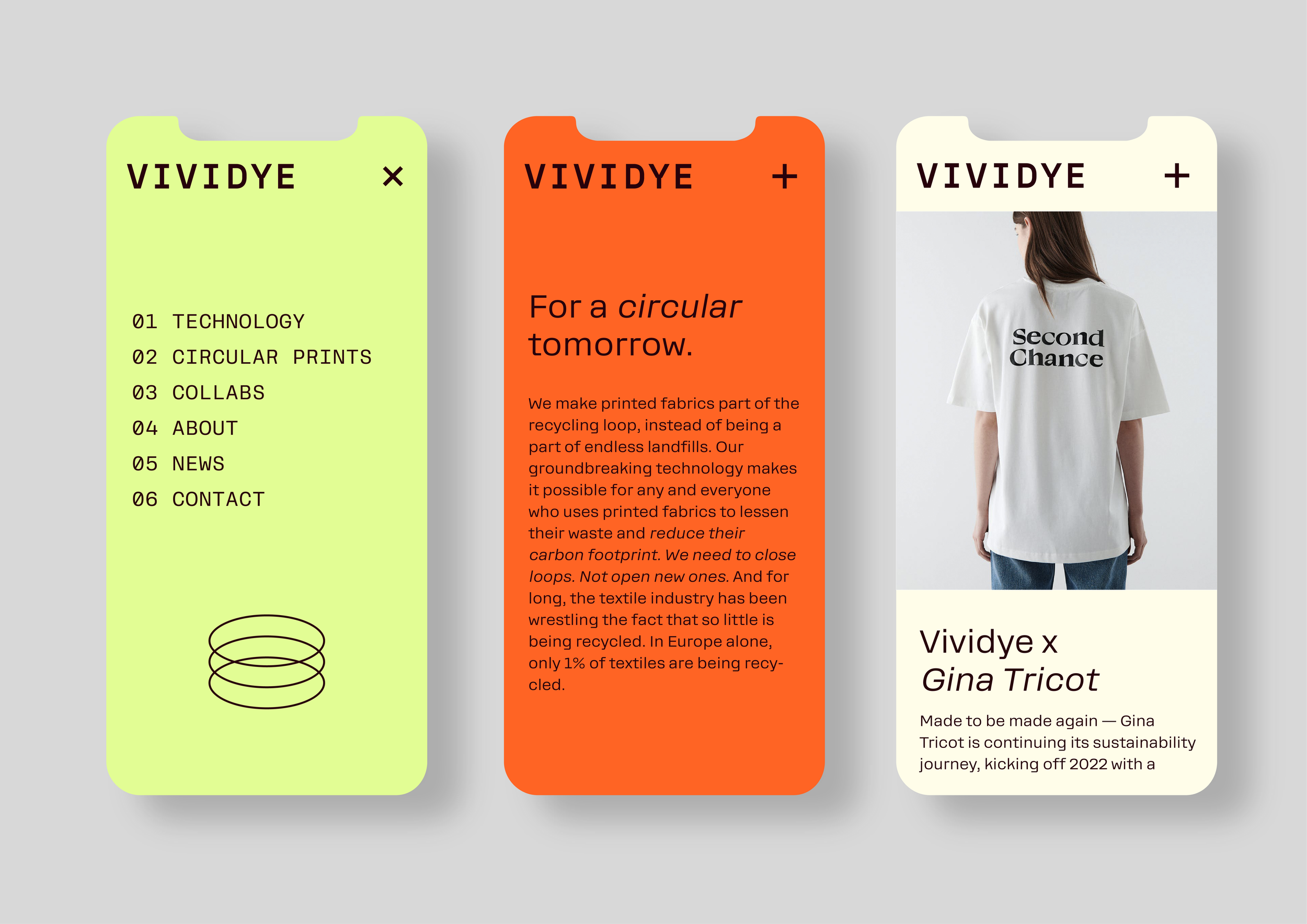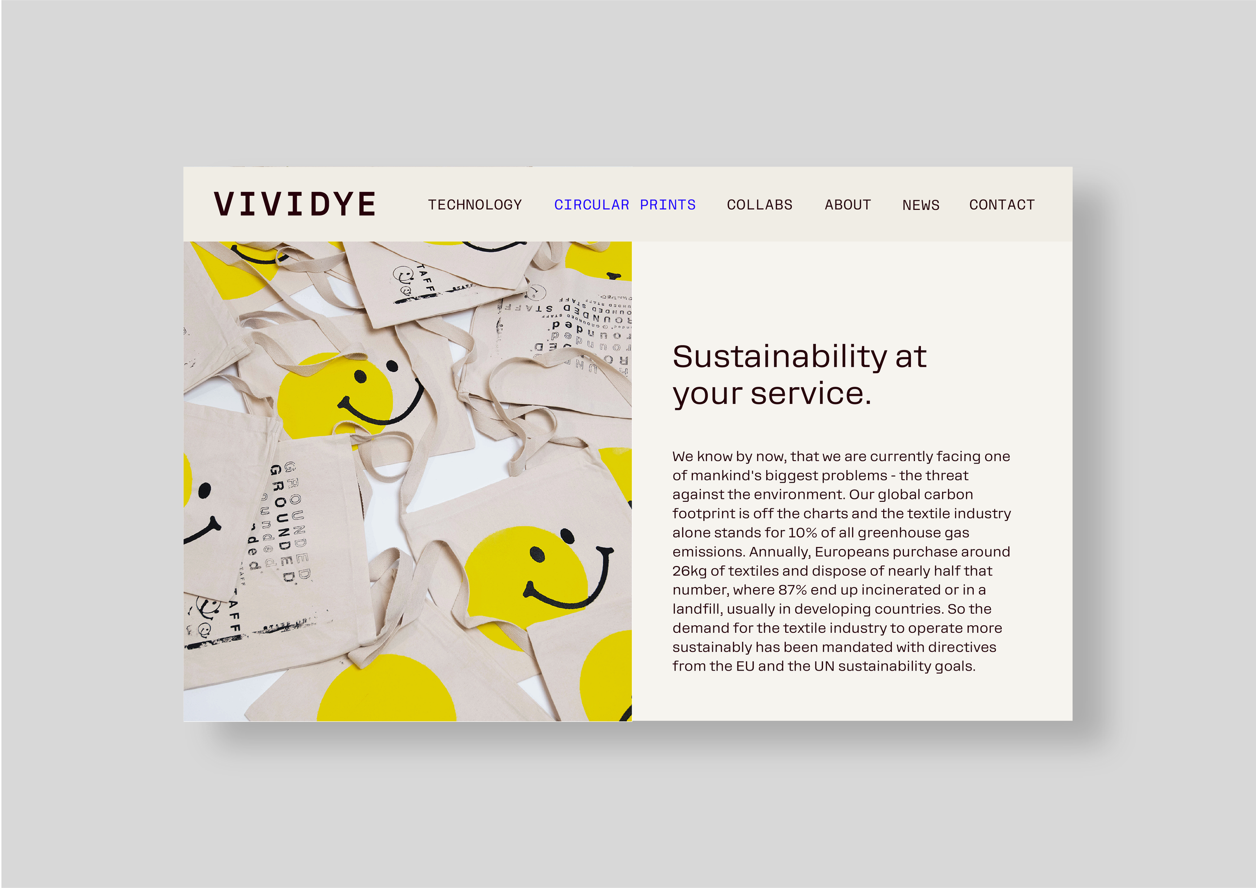 Vividye, a pioneer Swedish tech company in textile printing technology with a focus on removable printing, got a new visual identity in 2023. Their breakthrough technology is an important step towards a circular textile industry.